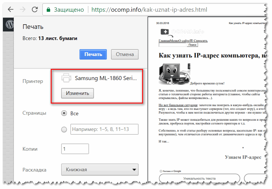 2) Далее измените принтер по умолчанию на «Сохранить как PDF» или «Microsoft Print to PDF» (в зависимости от вашего браузера и ОС — у вас могут быть доступны разные варианты: как оба, так и всего один из них). См. пару скриншотов ниже.
