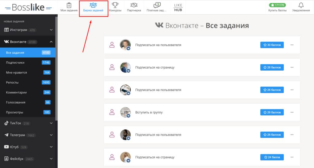 Как только соберете нужное количество баллов, можете создать свое задание на накрутку подписчиков.
