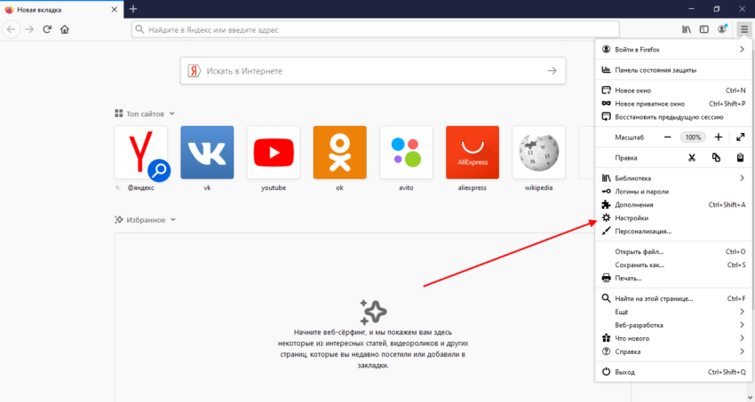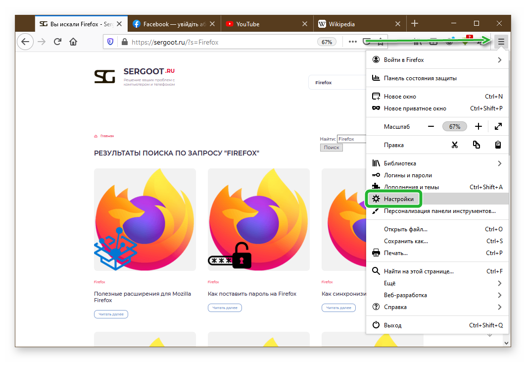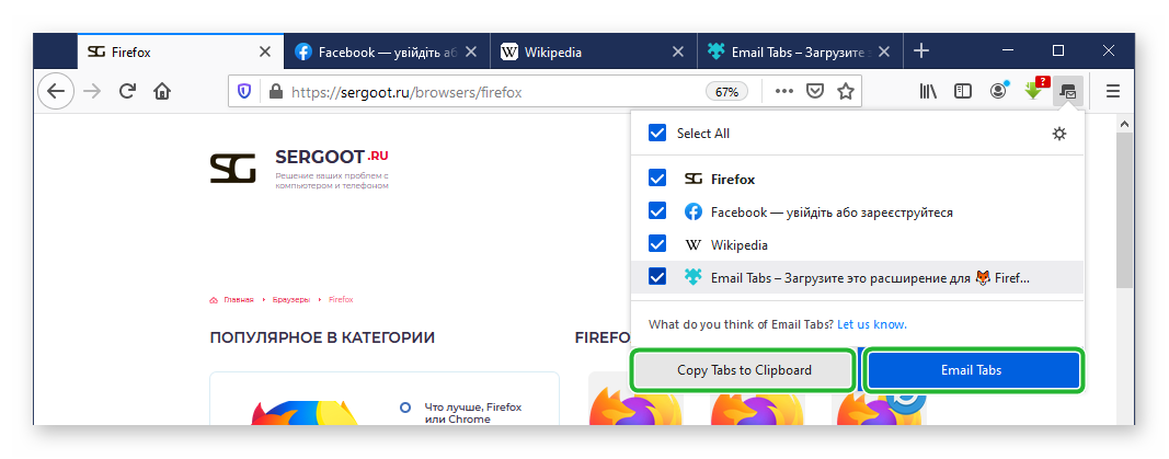 Открыть вкладки в интернет-обозревателе Mozilla Firefox.