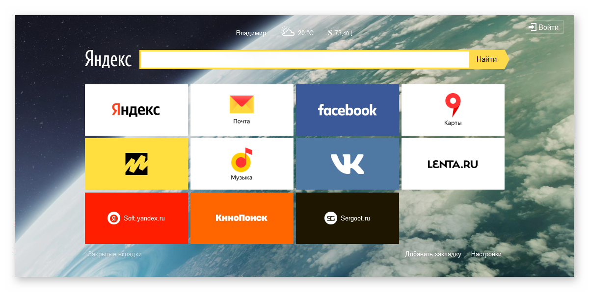- После главная страница браузера полностью изменится. При открытии новой вкладки вам будут доступны Табло, куда вы сможете добавлять страницы.