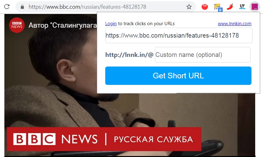 Кстати, у Lnnkin есть еще расширение для Chrome, позволяющее сокращать ссылки прямо из вкладки браузера.