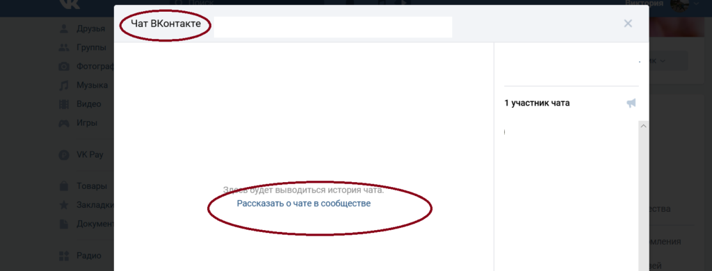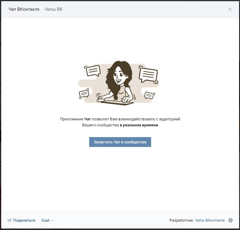 Раскрывается окно, в котором нужно нажать «Запустить Чат в сообществе».