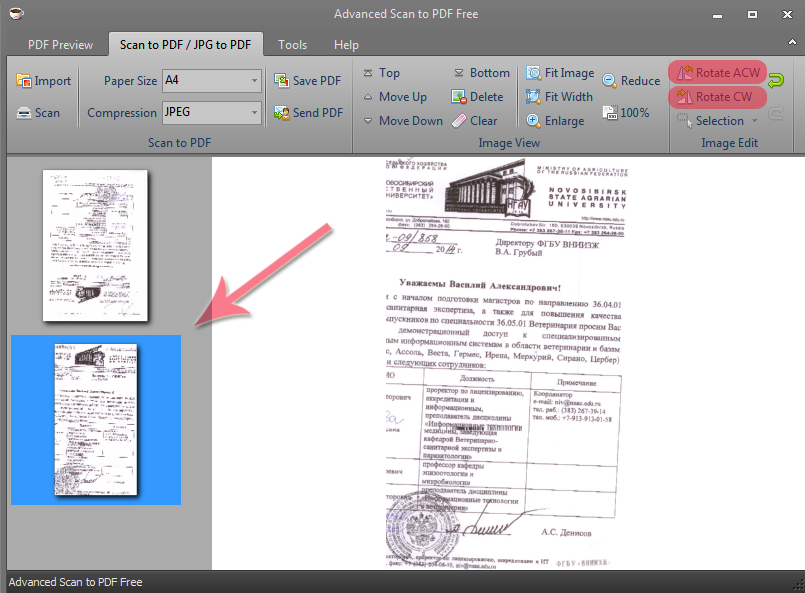 Эта программа имеет одну важную функцию, которая придает ей популярности среди пользователей, соединение нескольких отсканированных страниц в одно целое. Но существует один недостаток — только 30-дневное бесплатное использование. Чтобы воспользоваться RiDoc ее сначала нужно скачать и инсталлировать на компьютер. А потом: