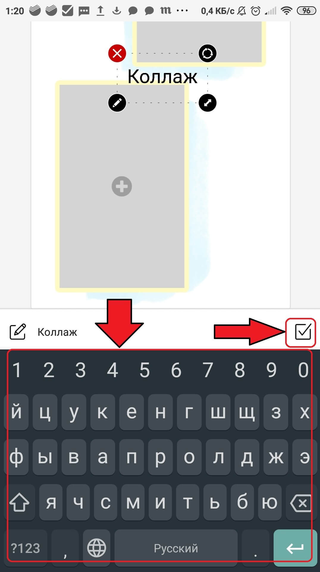 Напечатайте текст. Подтвердите изменения кнопкой справа над клавиатурой.