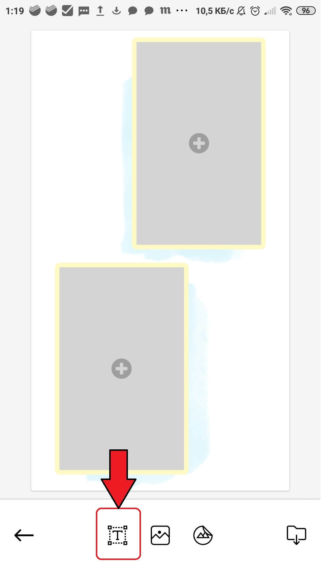 Отобразится шаблон с возможностью редактирования. Можно внести в него изменения. Например, добавьте текст. Для этого имеется кнопка внизу экрана.