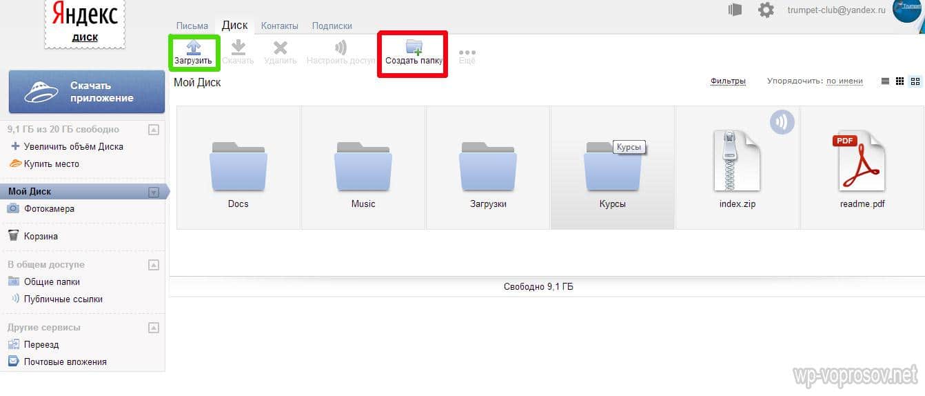 Подключаемся, заходим в диск и видим все размещенные на нем папки и файлы. К сожаленью, здесь нет возможности автосинхронизации, как на мейле — можно только зайти в свой Диск и скачать или загрузить вручную.
