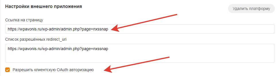 Добавляем платформу (кнопка внизу) для OAuth авторизации