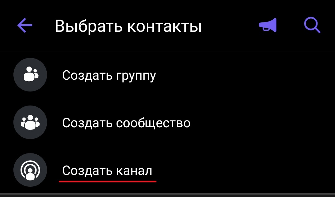 Шаг 1. Заходим в Viber и нажимаем на иконку нового сообщения. Откроется меню, где можно выбрать, что вы хотите сделать: создать группу, сообщество или канал. Кликаем на «Создать канал».