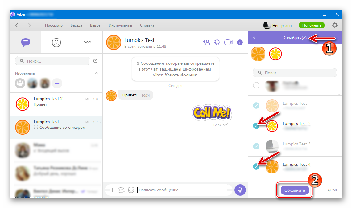 Устанавливаем отметки в чекбоксах возле имен будущих участников группы в мессенджере и кликаем «Сохранить».