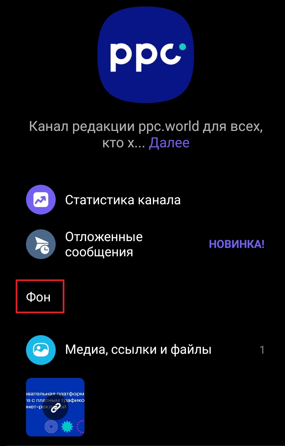 Шаг 5. Настраиваем фон для канала. Это необязательно — можно оставить стандартный черный, а можно загрузить картинку со своего устройства, сделать фото прямо сейчас или выбрать один из встроенных фонов. Для этого заходим в настройки канала и кликаем на поле «Фон».