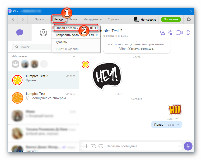 - Кликом по пункту «Беседа» в окне Windows-клиента Viber открываем меню и выбираем пункт «Новая беседа…».
