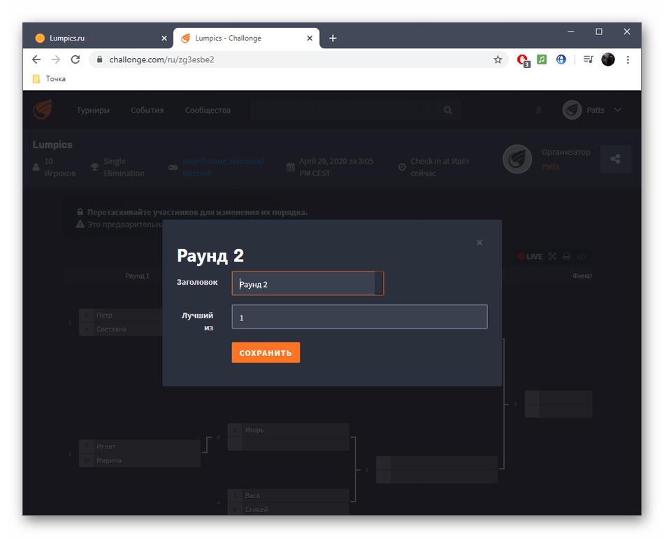 При необходимости редактируйте название раундов и изменяйте строку «Лучший из», чтобы указать, сколько матчей нужно выиграть для победы в паре.