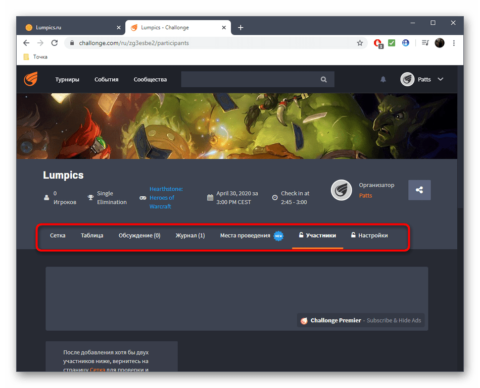 - Для получения полного доступа к Challonge потребуется зарегистрироваться или авторизоваться, воспользовавшись расположенными сверху кнопками.