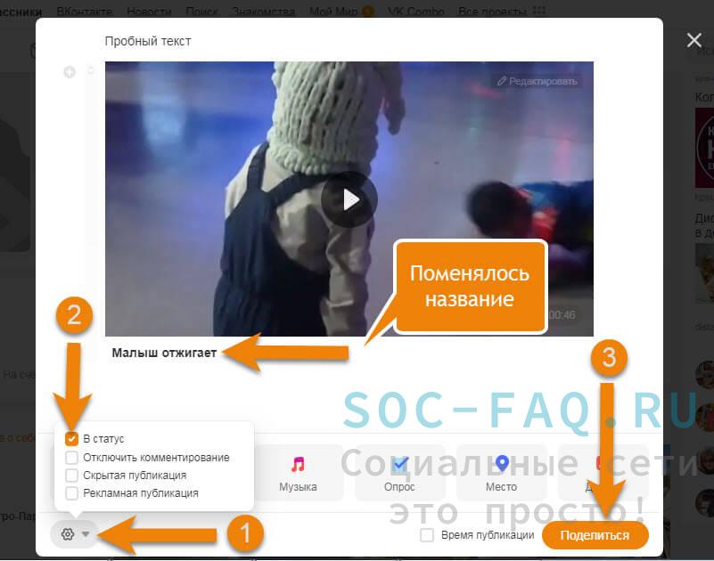 - Как написать заметку в соцсети Одноклассники понятно, а как добавить — когда все готово, жмите оранжевую кнопку «Поделиться».