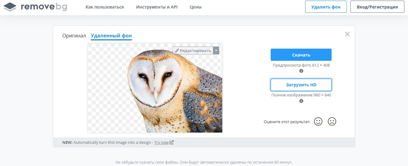 Онлайн-сервис для вырезания объектов с фотографий. Позволяет ликвидировать фон без регистрации и оплаты. Алгоритм автоматически за 20 секунд определяет объект на снимке и удаляет все лишнее.