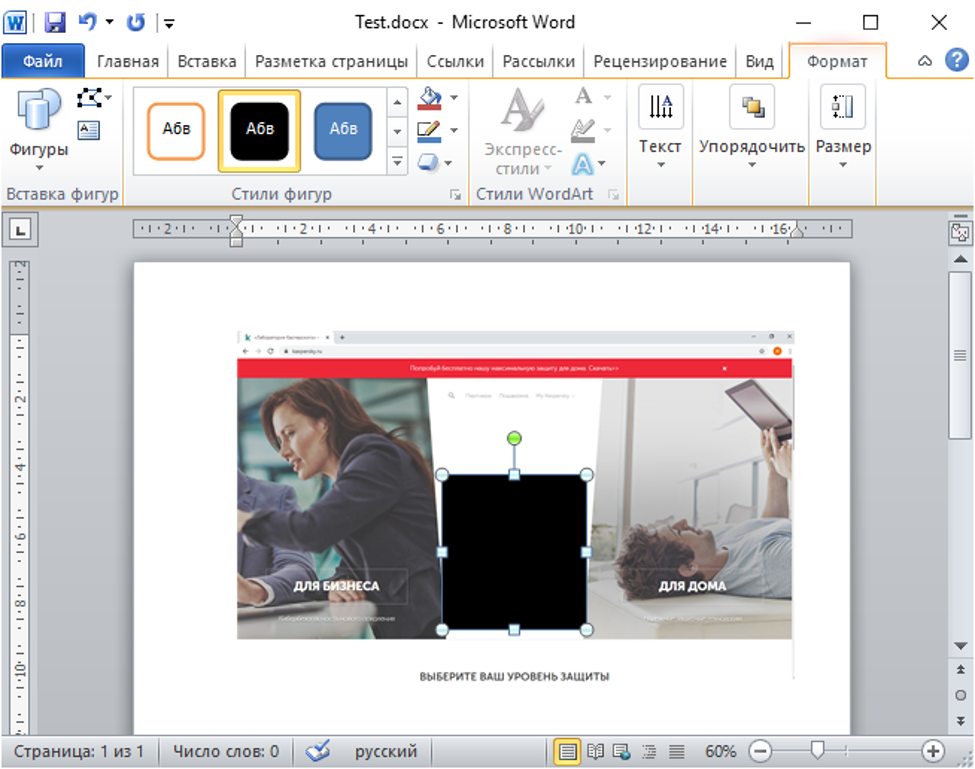 Черный прямоугольник из документа Word читатель просто удалит и увидит, что за ним скрыто