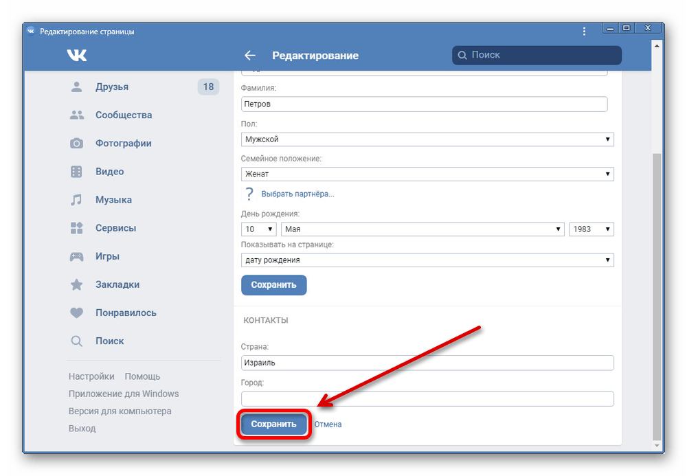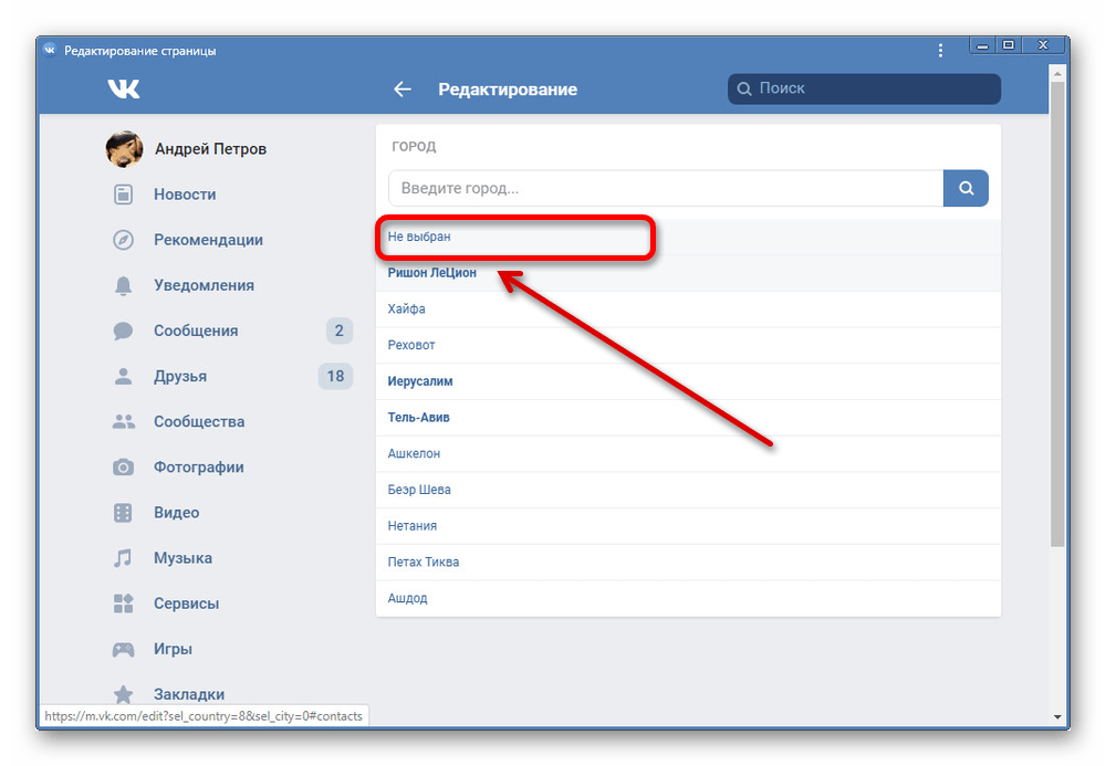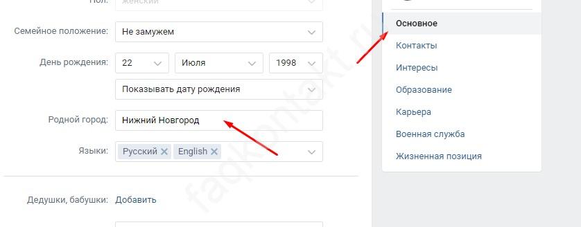 Также как на телефоне воспользуемся настройками социальной сети для скрытия родного города: