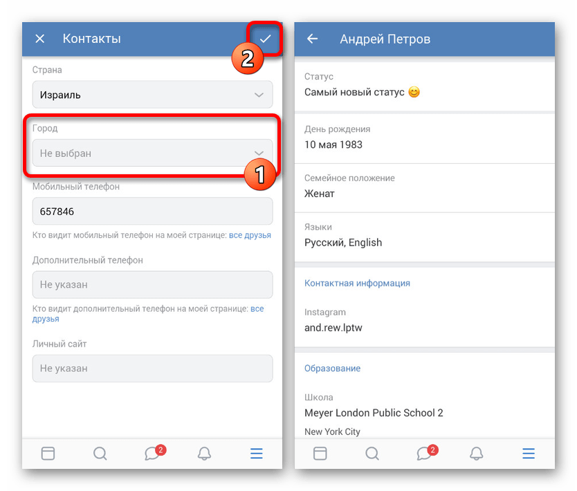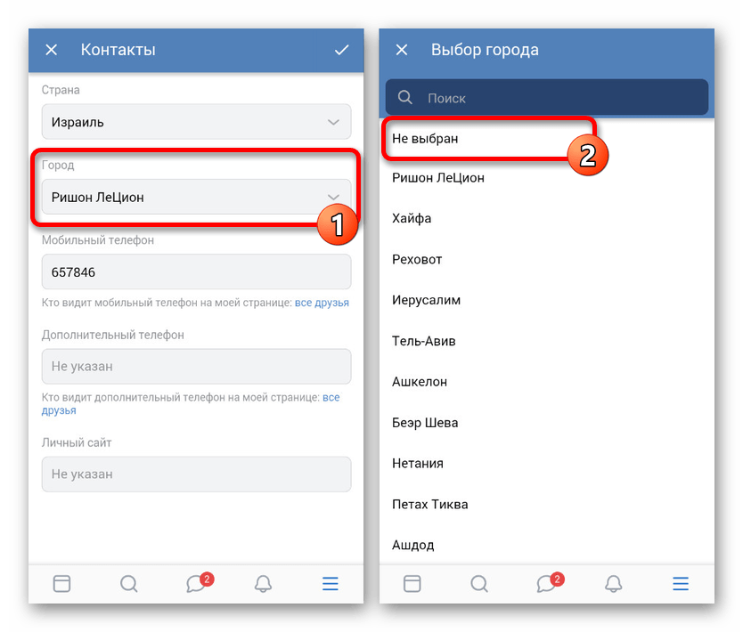 По аналогии с настольной версией, официальное мобильное приложение ВКонтакте предоставляет два способа изменения и, соответственно, удаления города