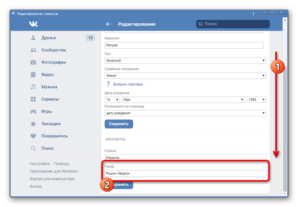 Если вы пользуетесь полной версией социальной сети, можно внести необходимые правки через ПК / ноутбук. Здесь также имеется два варианта, как в ВК поменять город проживания — сделать это для родного населенного пункта или ввести более подробные сведения.