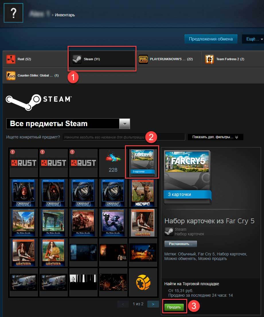 Требования те же, что и при покупке, тем больше предметов нужно для продажи. Самые дорогие предметы из таких игр, как Counter-Strike: Global Offensive, Team Fortress 2, DOTA 2, PLAYERUNKNOWN’S BATTLEGROUNDS и некоторых других. Играя в эти игры, вы получаете определенные предметы в свой инвентарь, которые затем можете продать. Шансы получить дорогой товар минимальны.