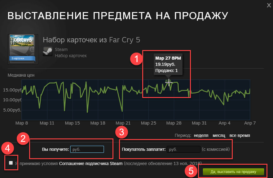 После того как вы выполните все условия, спустя месяц вы сможете спокойно использовать торговую площадку Steam, для того, чтобы продавать на ней свои предметы и покупать чужие. Торговая площадка позволит вам продавать и приобретать такие вещи, как карточки к играм, различные игровые предметы, фоны, смайлы и многое другое.