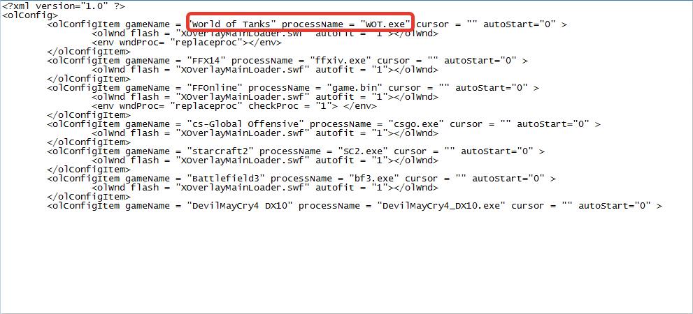 Вместо названия ненужной игры пишем «WOT», вместо имени процесса «World of Tanks».