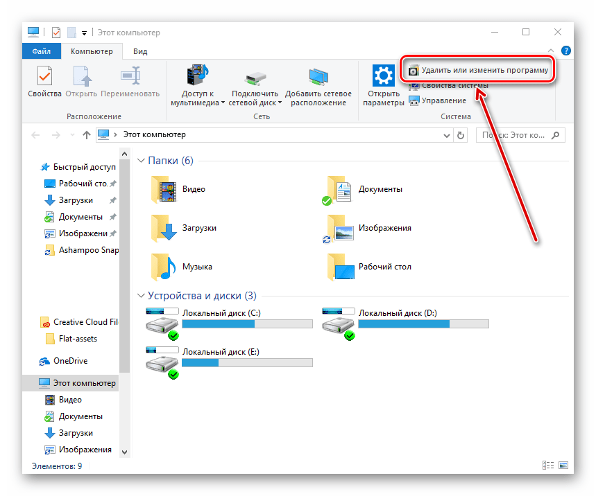 - Заходим в «Мой компьютер» — «Удалить программу».