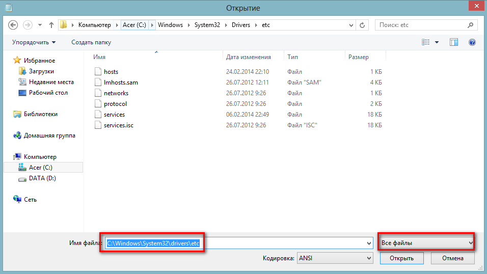 У нас нашлось несколько файлов, но нас интересует файл «hosts», его и выбираем.