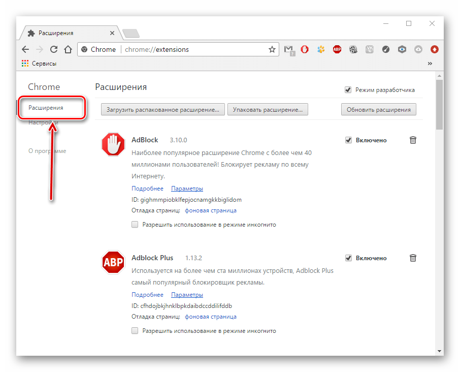 Шаг 2. Проверить расширения/дополнения у браузеров.