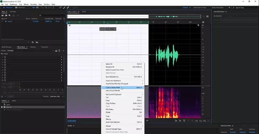Кликните правой кнопкой мыши по выделению и найдите пункт «Capture Noise Print». Это создаст профиль шума, по которому будет анализироваться трек.