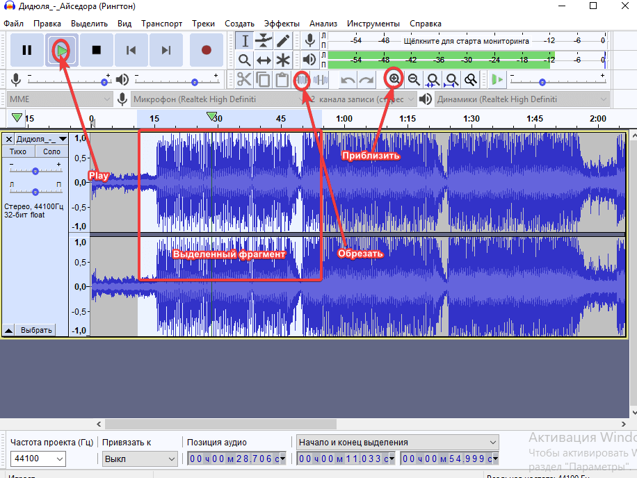 Как обрезать музыку и установить её в качестве телефонного рингтона. Это не так сложно, как кажется на первый взгляд. Нарезать песню можно с помощью бесплатного многоплатформенного редактора Audacity.