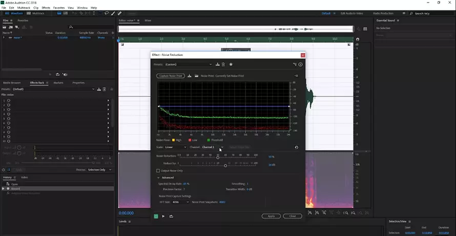 Шумоподавление в Adobe Audition