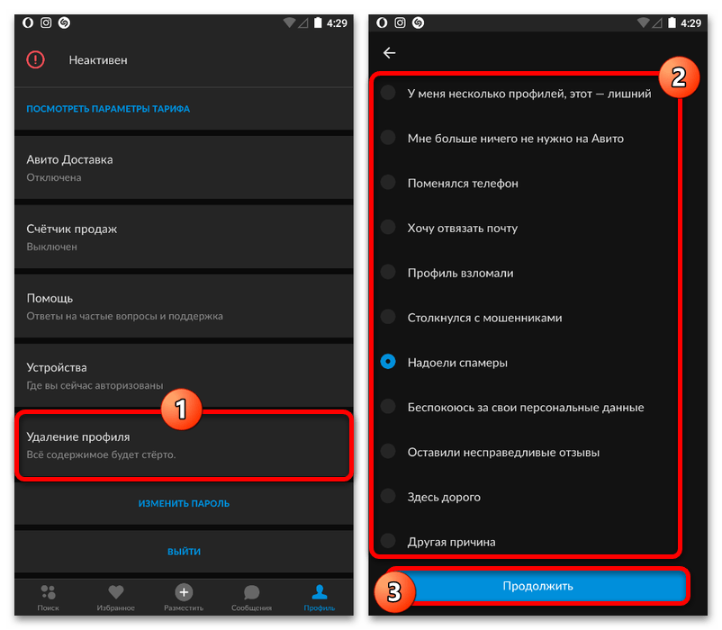 На этом первая часть инструкции по удалению профиля из платформы Avito считается завершенной. Но это не все действия, которые необходимо предпринять пользователю, чтобы добиться поставленной задачи.