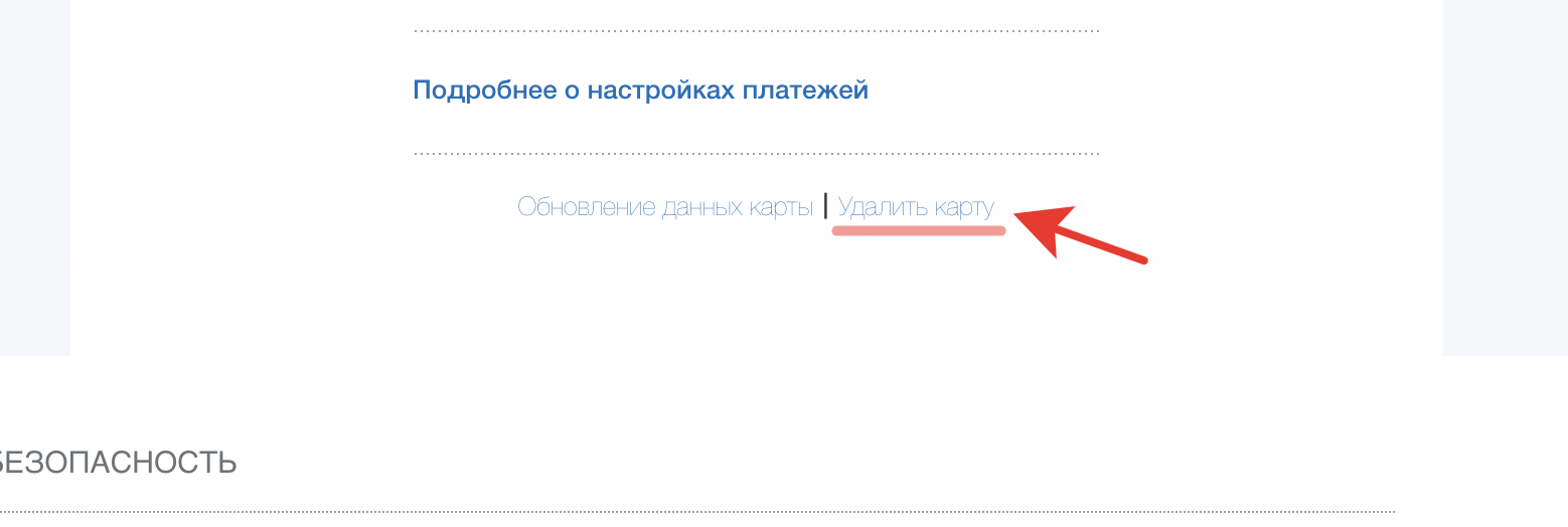 Прокрутите описание донизу, нажмите «Удалить карту» или «Удалить банковский счет».