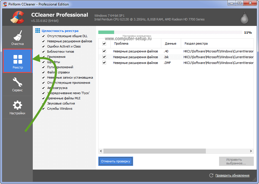 CCleaner позволит найти и стереть все ключи реестра, относящиеся к Аваст.