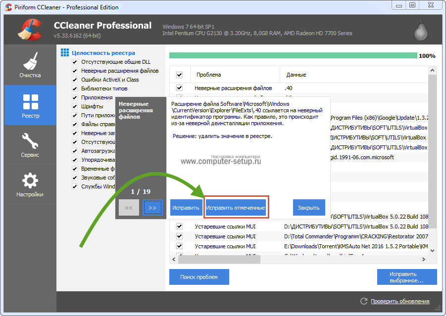6Щелкаем «Исправить отмеченные» и закрываем программу.