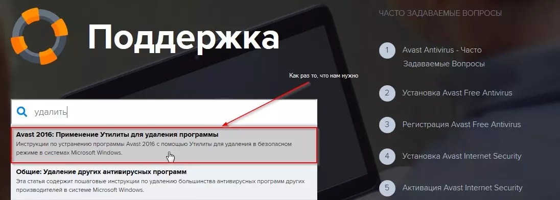 При желании вы можете загрузить программу удаления Avast с сайта support.avast.com.