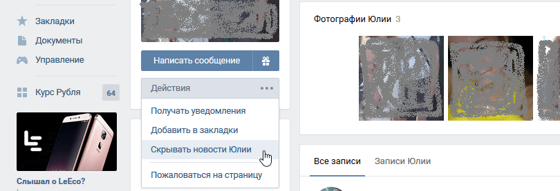 Отписываемся от новостей друга