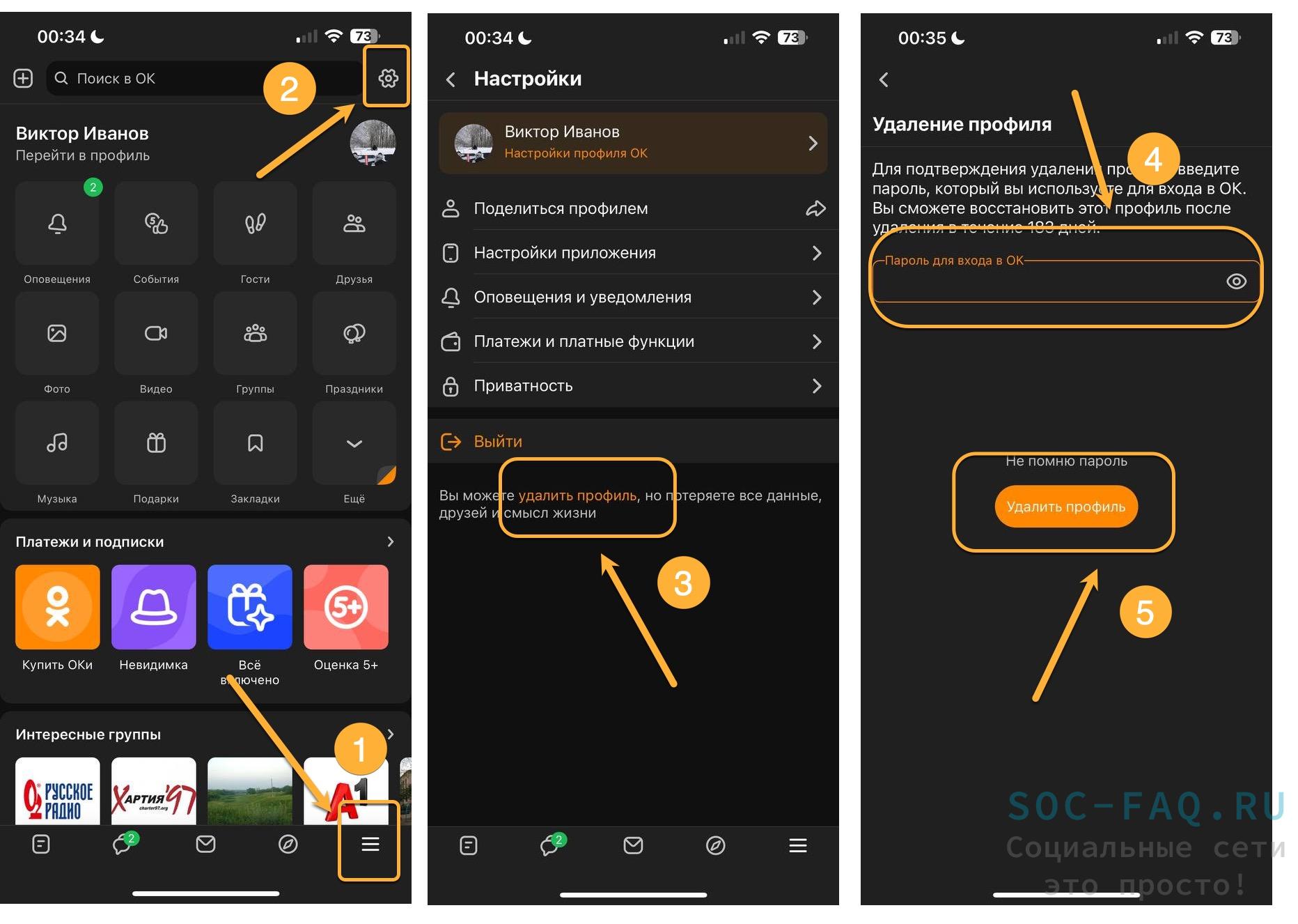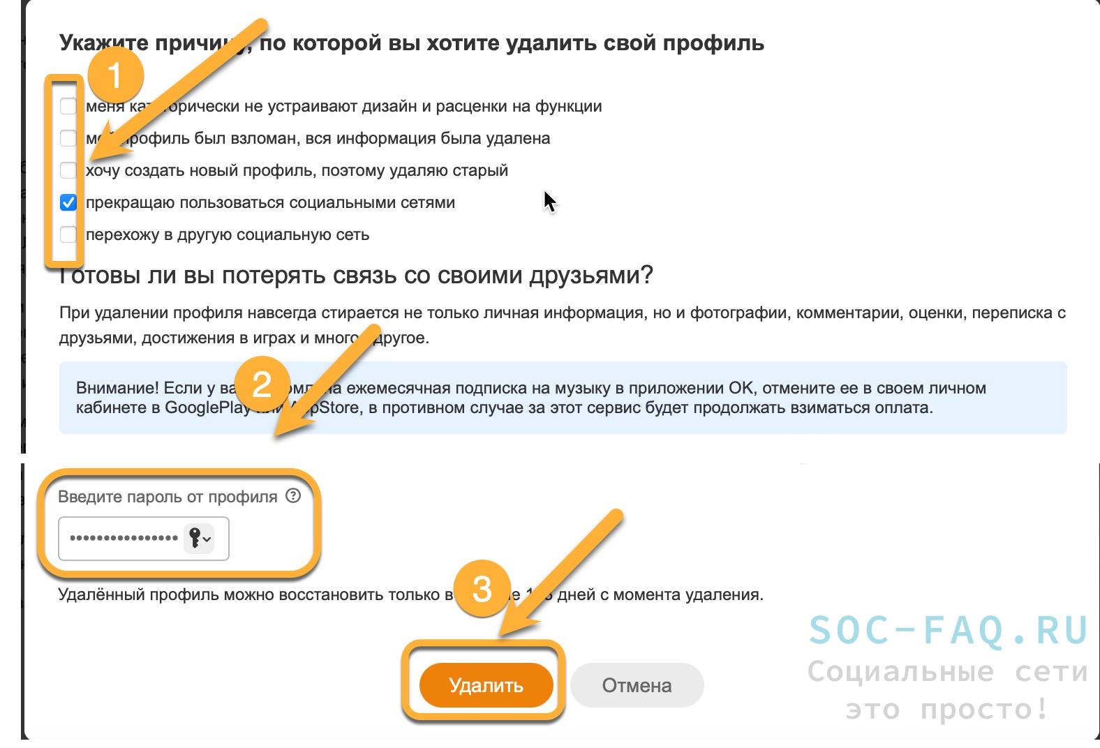 Как удалить свой профиль в ОК?