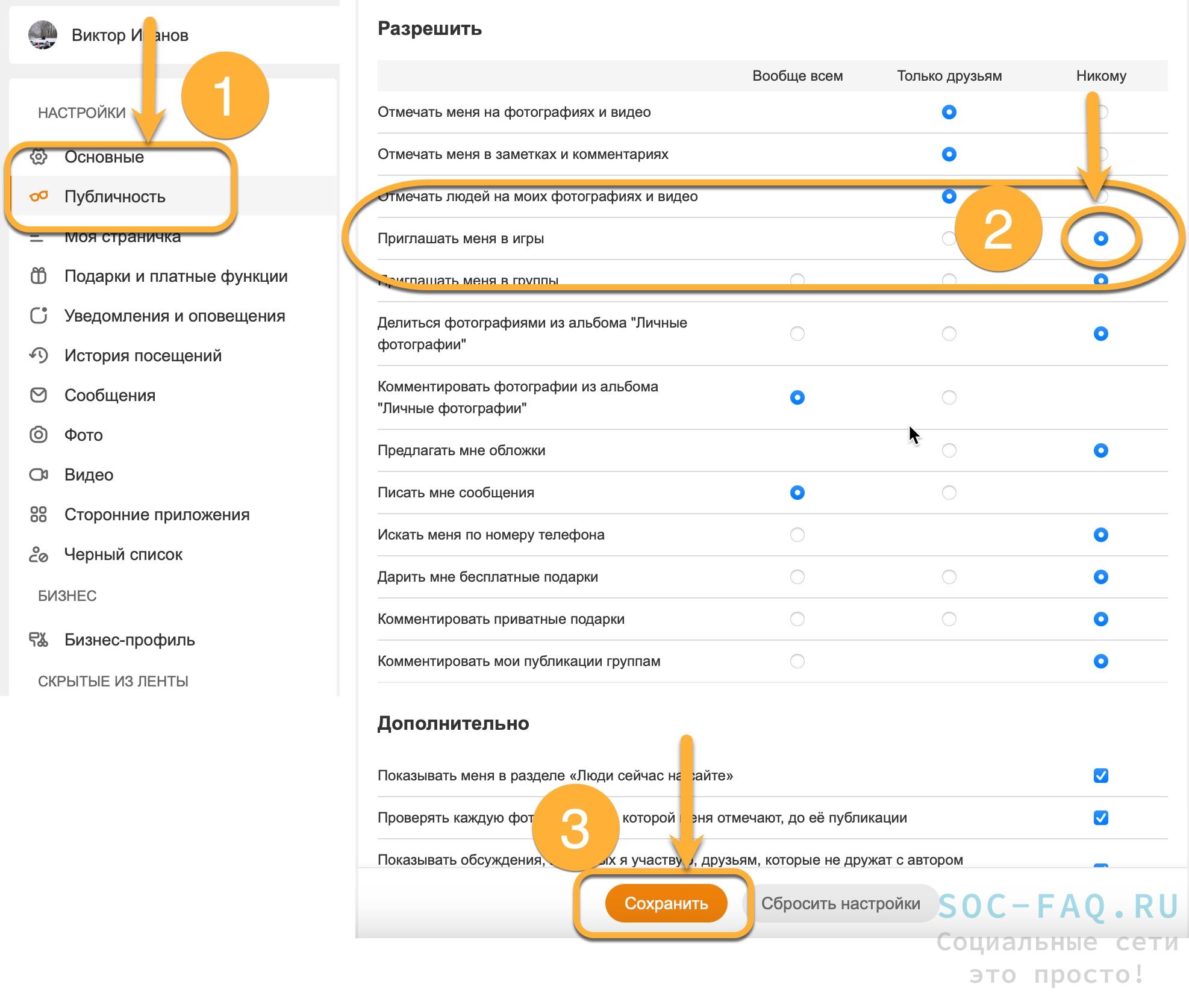 Следующим шагом вам необходимо нажать кнопку «Сохранить». Все, отныне любители искать котов, выращивать цветы и свиней на ферме не будут доставать вас назойливыми предложениями присоединиться к игре. Но если у вас закрытый профиль в Одноклассниках, то после изменений в настройках, профиль откроют. Если вы заходите закрыть его снова, вам необходимо повторно подключить услугу. Стоимость этой услуги сейчас — 20 ОК.