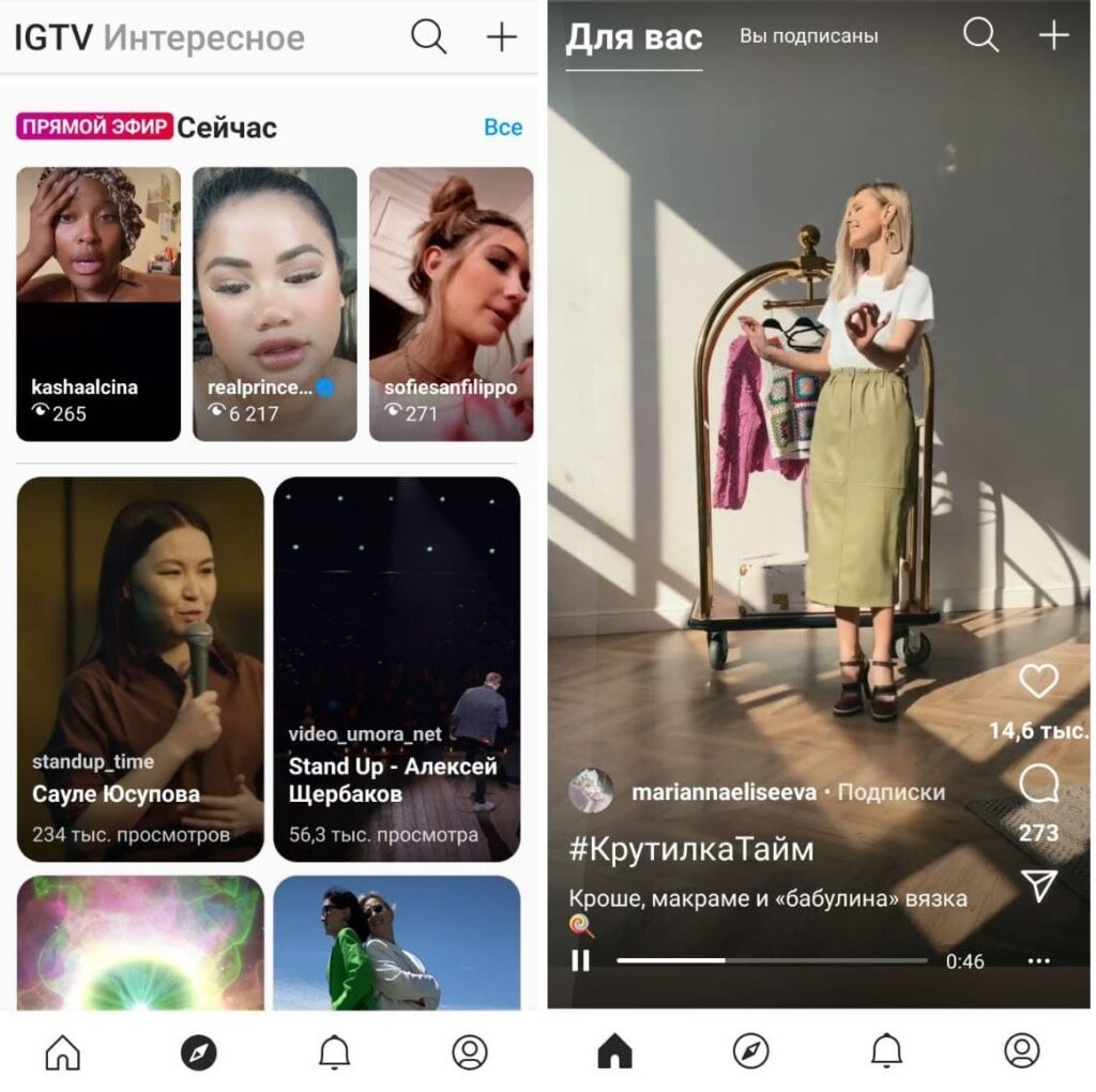 Сейчас в обычном приложении Instagram нет возможности искать IGTV-ролики в специальном разделе — видео доступны только на страницах владельцев. Зато такая функция есть в приложении IGTV, где нет стандартных аккаунтов, а лишь каналы пользователей, куда сохраняются все IGTV-видео.