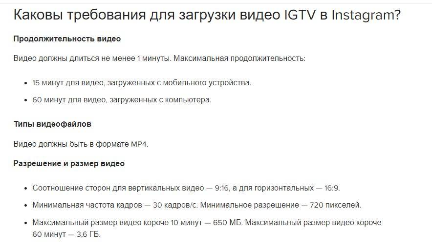 Кроме правил сообщества, нужно соблюдать формат видео в IGTV в Инстаграме, максимальный размер.