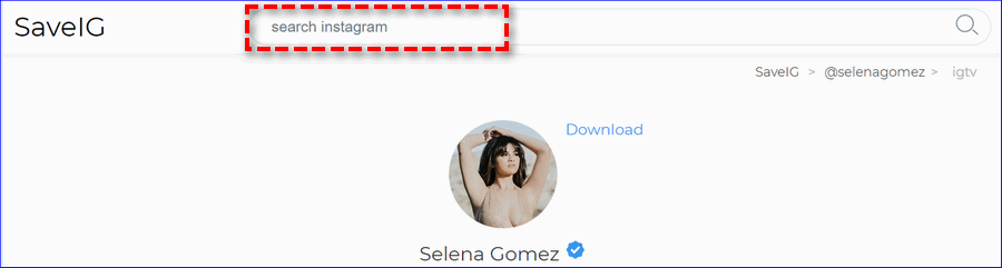 Другой способ скачать ролик из Инстаграма на компьютер — воспользоваться сайтом SaveIGtv:
