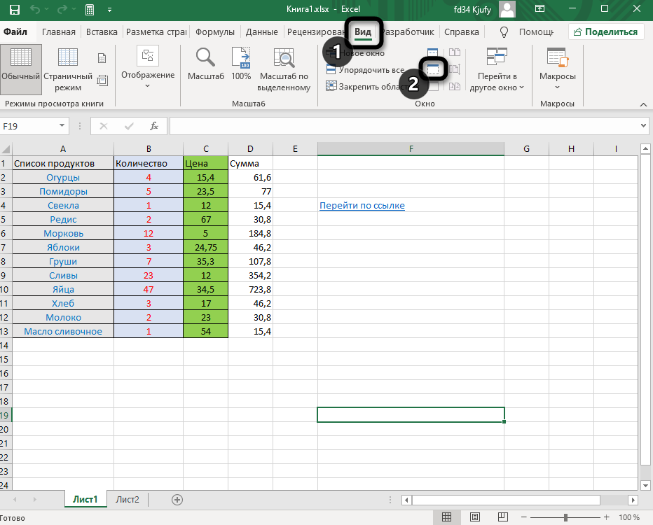 Я лично не сталкивался с ситуациями, когда требуется скрытие целого окна книги вместе с находящимися на нем листами. Могу предположить, что это пригодится тем, кто работает с несколькими книгами одновременно или на время хочет отключить отображение содержимого, оставив только инструменты. Для этого используйте другой встроенный в программу инструмент. Переключитесь на вкладку «Вид» и нажмите кнопку «Скрыть окно» (она обведена на следующем скриншоте).