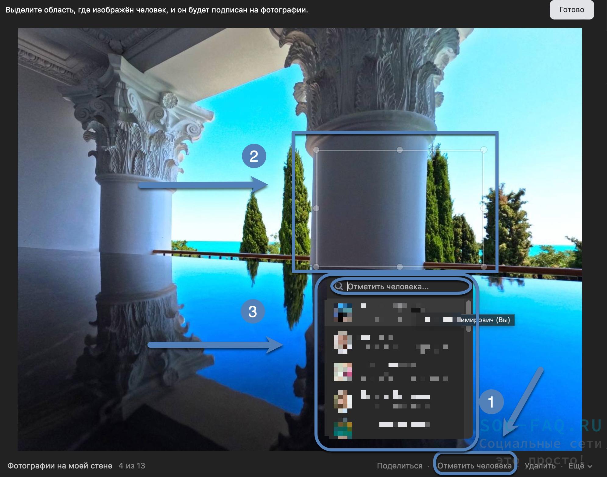 Иногда бывают ситуации, когда вы заходите в социальную сеть через обычный браузер, выбираете фотографию, но функции “Отметить человека” попросту нет. Случается это по разным причинам: