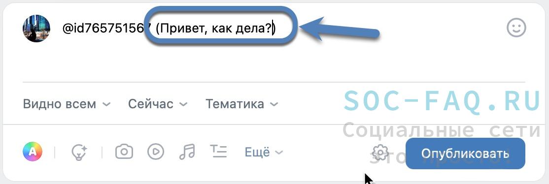 Рассмотрим, как отметить человека в ВК в тексте поста и комментария, как незнакомца, так и того, кто является вашим другом. Это делается одинаково на компьютере и на телефоне.