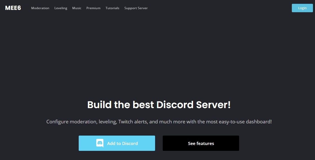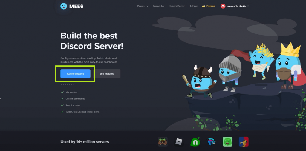 1. Visit the website of MEE6 and click the Add to Discord button.