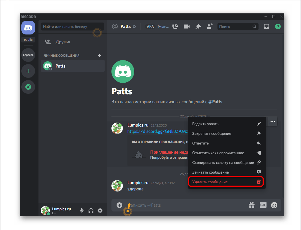 Доступно удалить несколько сообщений в Дискорде или полностью чаты, если приложение установлено на компьютере или ноутбуке пользователя. Если требуется убрать одно сообщение, то поступают так:
