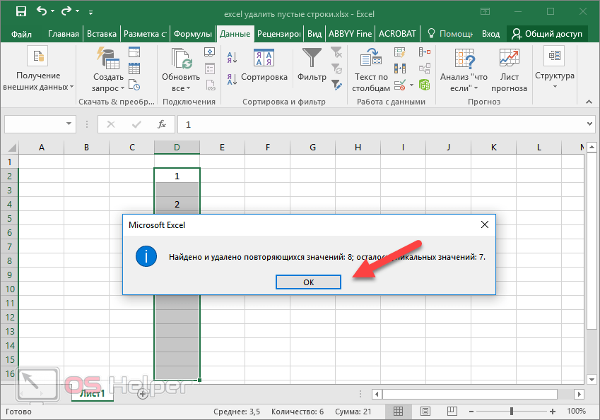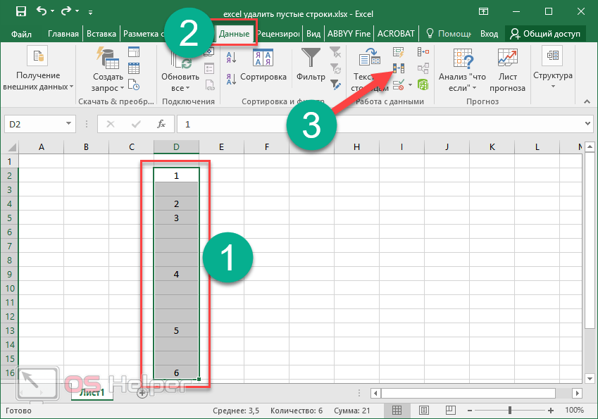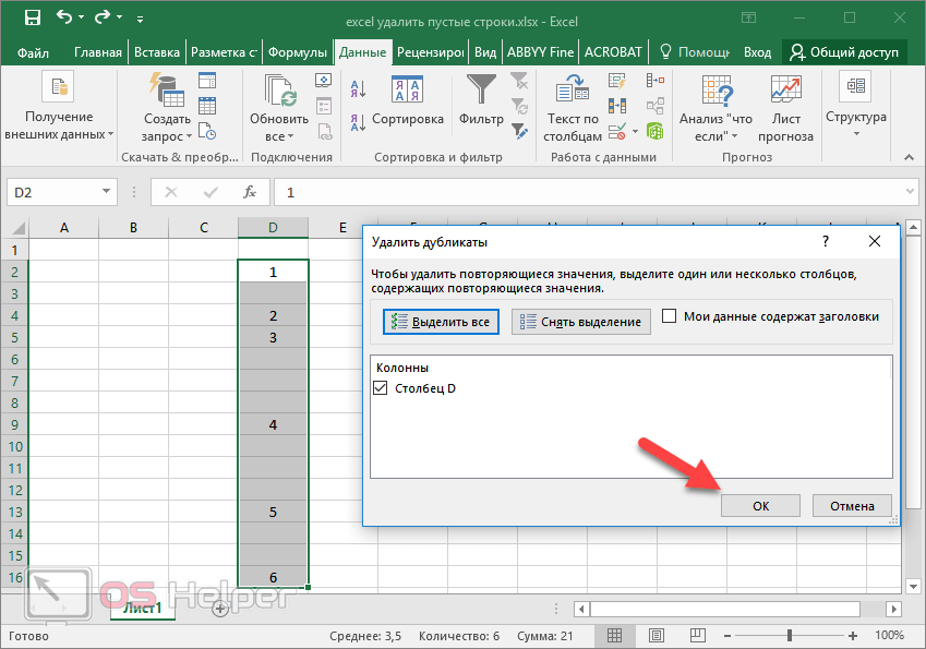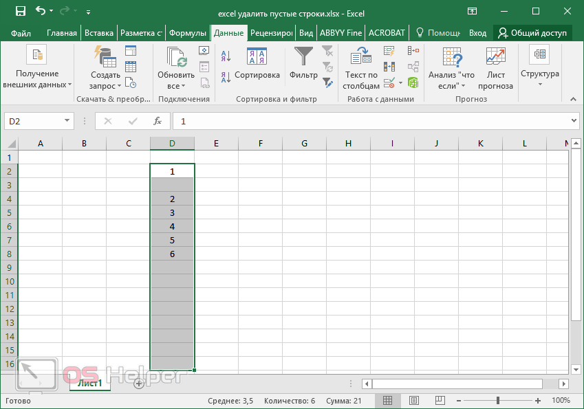 Как удалить пустые строки в Excel через вспомогательный столбец