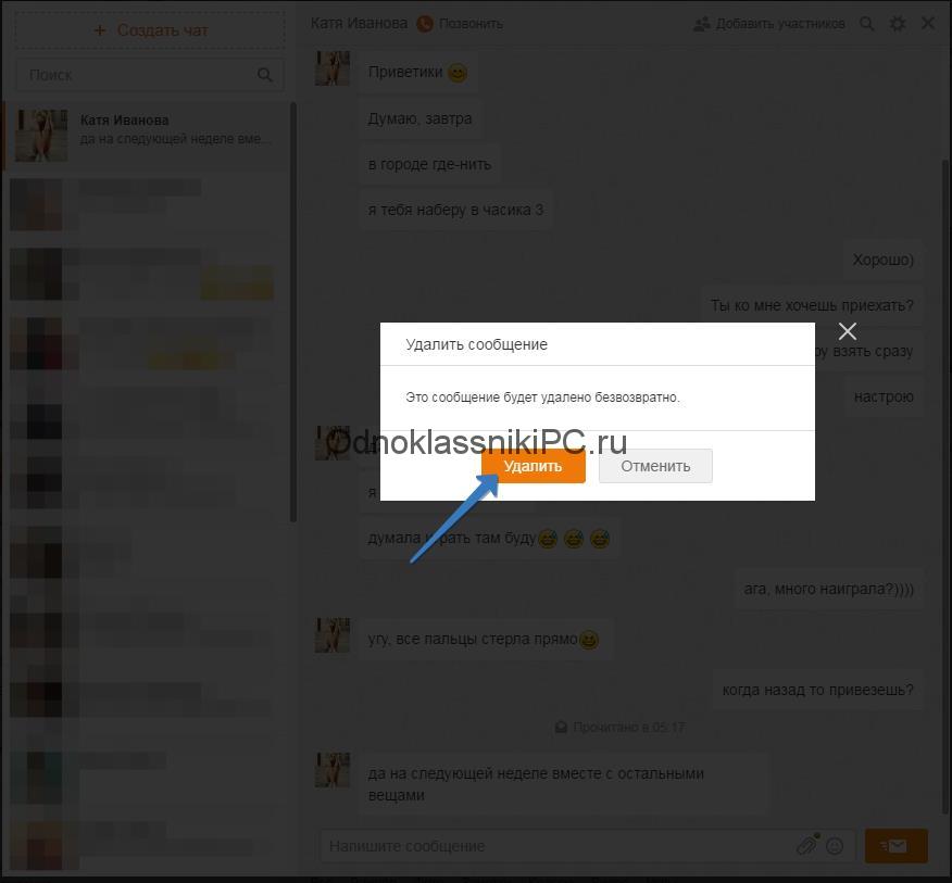 Как удалить переписку в одноклассниках с компьютера